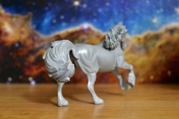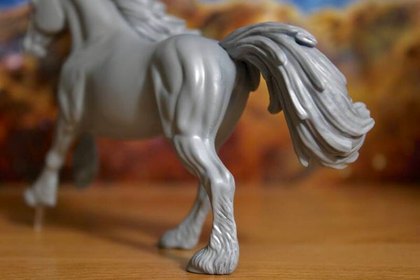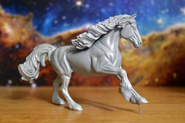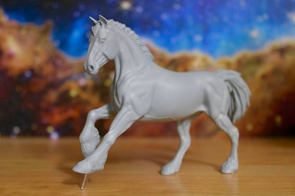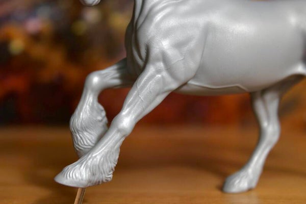 It is designed and supplied with a clear acrylic rod under the left front hoof to make it float and stabilize it.