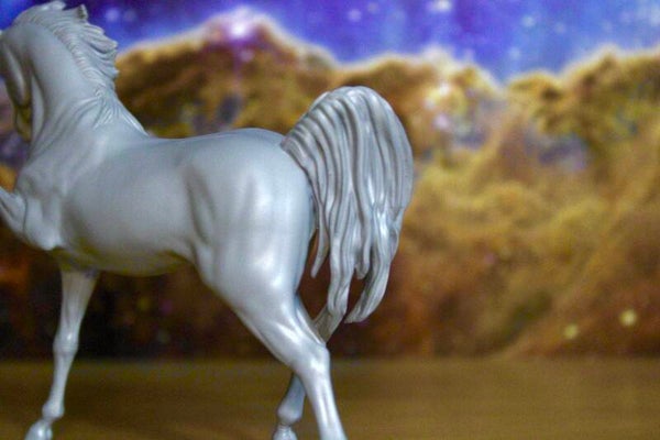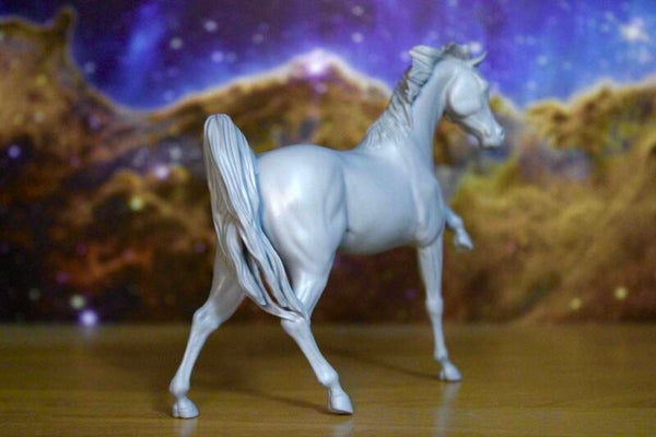 This stunning arabian stallion show his powerful spirit. You can imagine her in the field, in freedom or in a box.