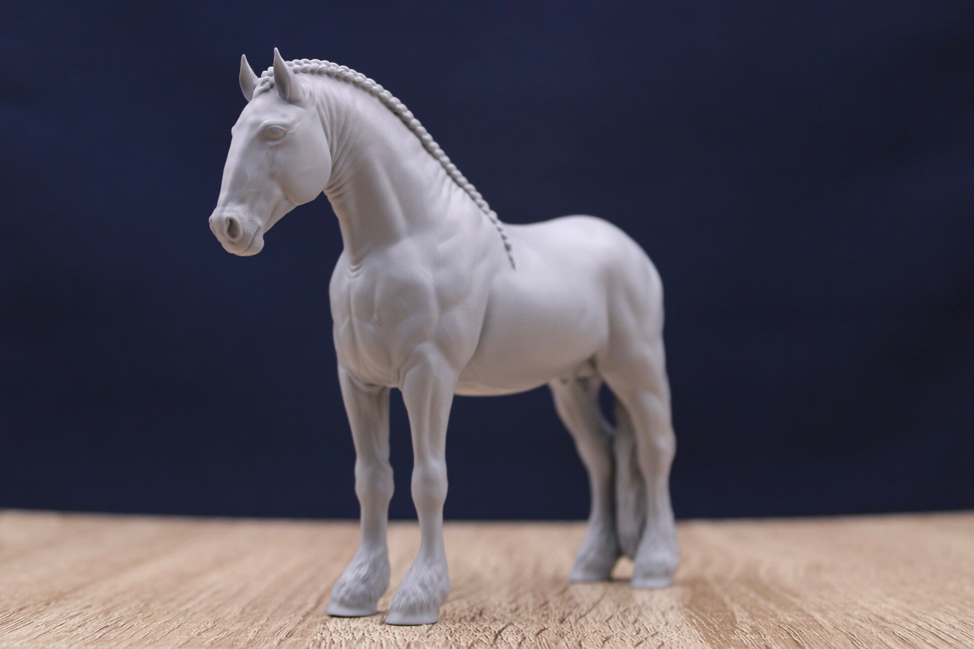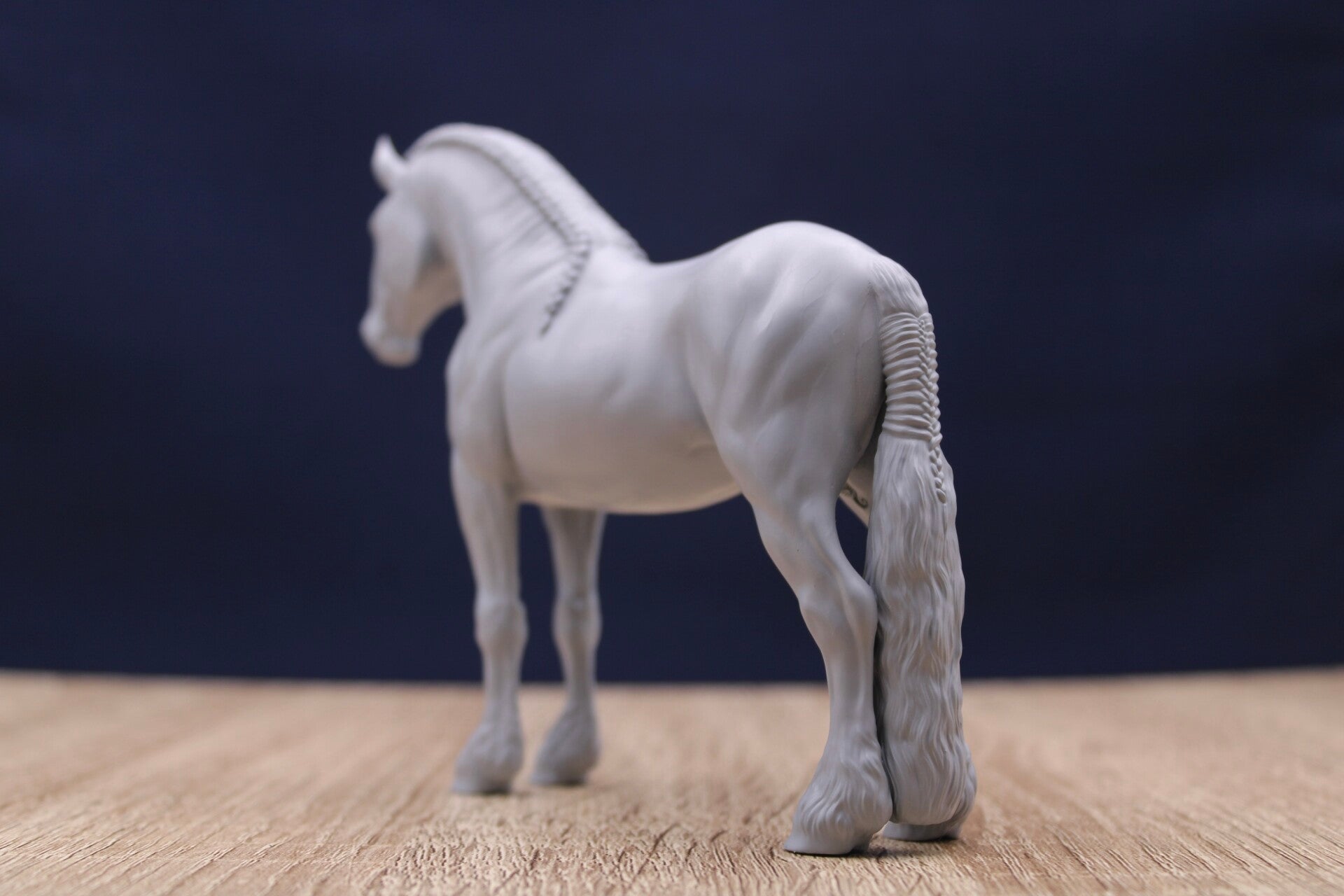 This majestic Friesian stallion with his a braided mane and tail is just waiting to be painted. With his large head carriage, he is perfectly suited to be harnessed.