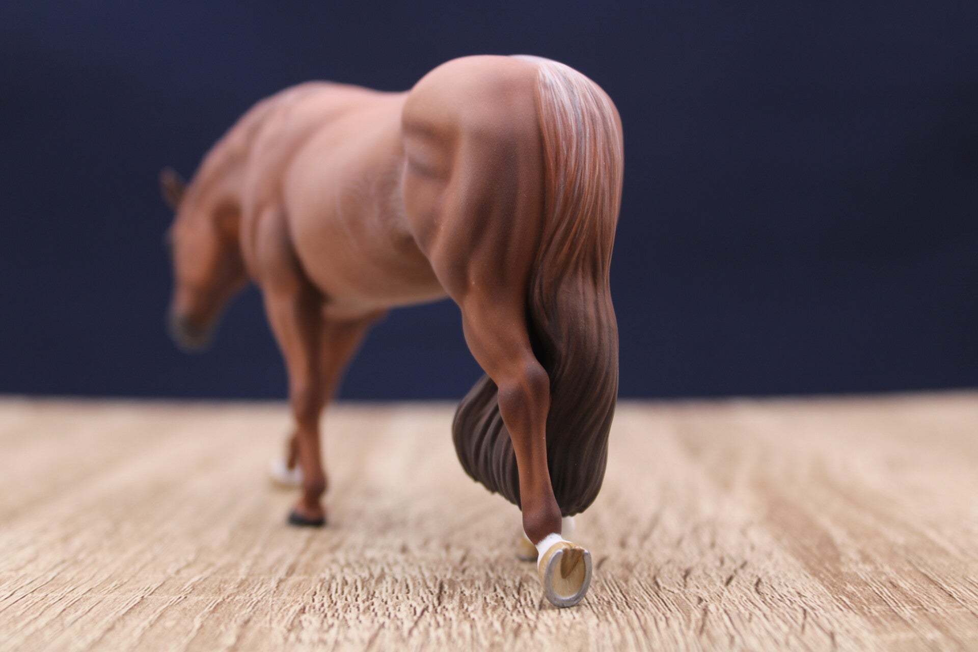 She is 3D printed in resin and built with a clear rod under her front left hoof for floating stability.