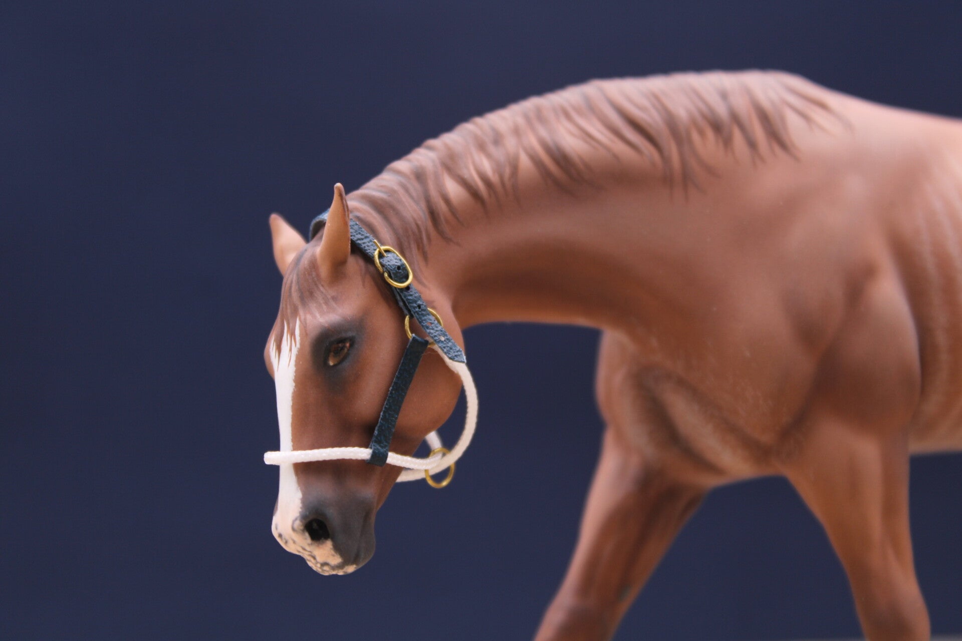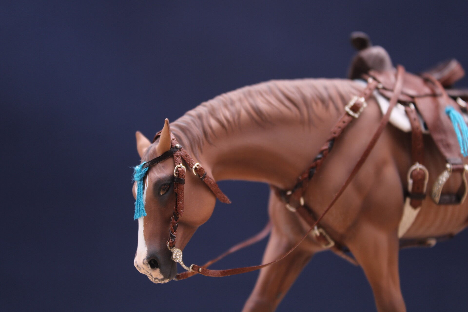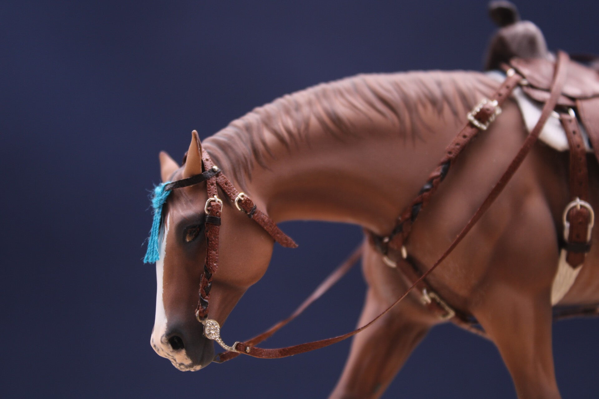 Here is Nabil hand painted with a dapple dark bay coat.