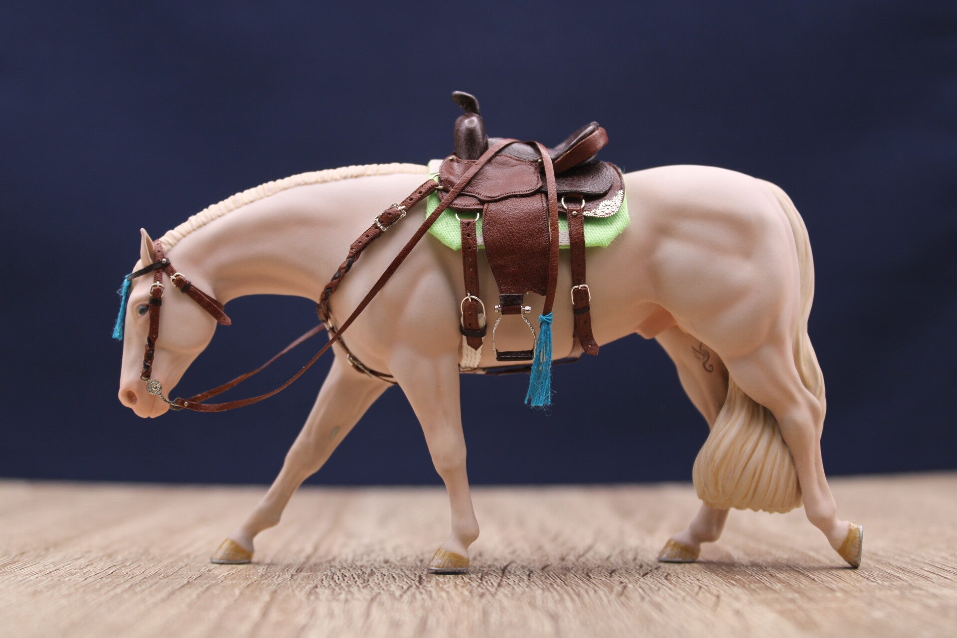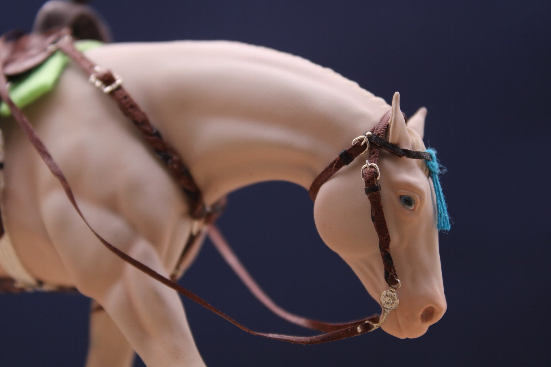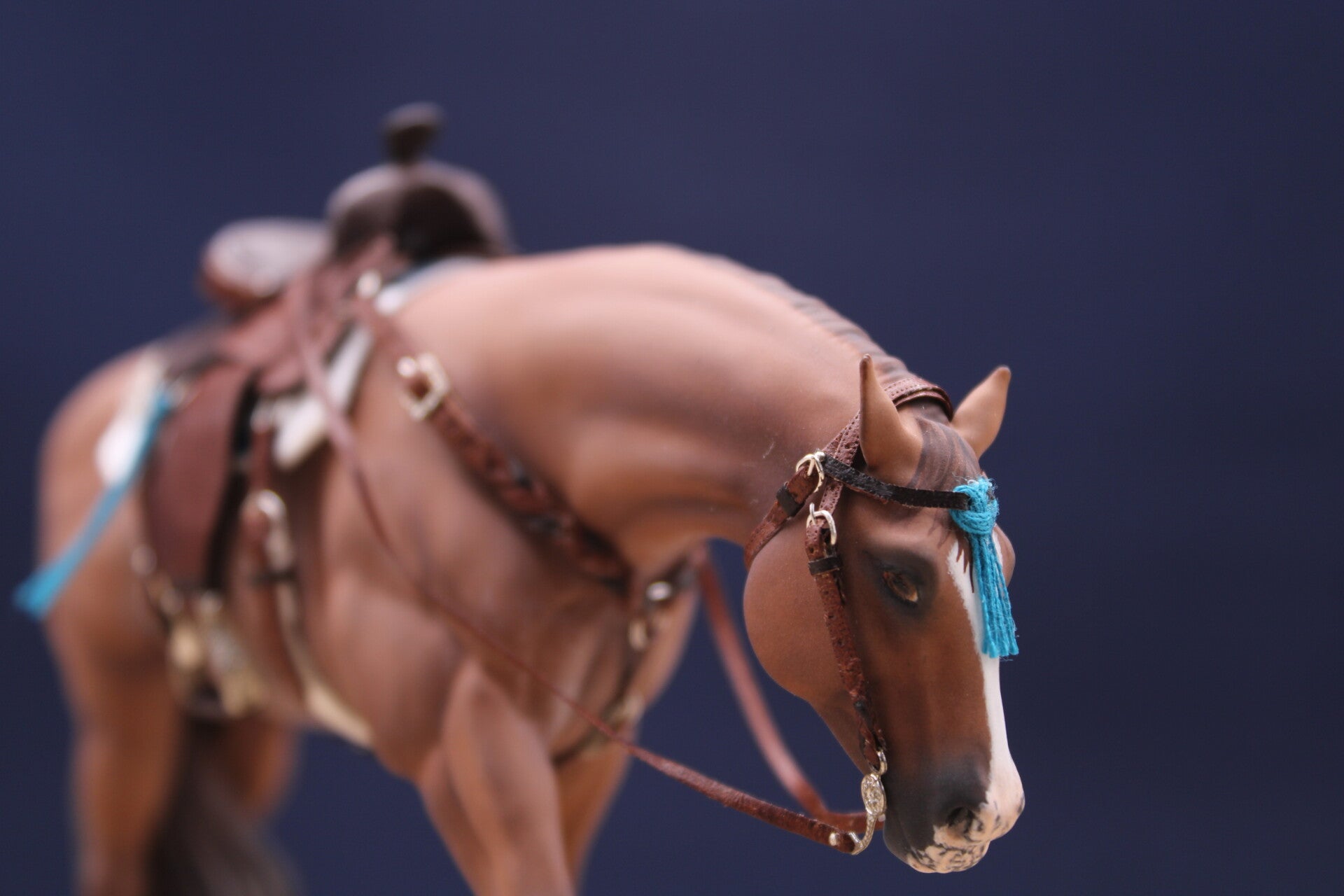 Here is Nabil hand painted with a dapple dark bay coat.